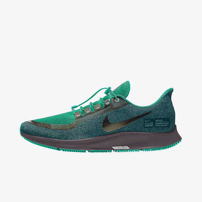 Nike Pegasus 35 Shield Low iD 專為各種程度的跑者設計,適合身經百戰的老手,也適合方才起步的新手。?此款特別版可自行選擇抓地力紋路,為自己平常的訓練狀況量身打造。?選用虹彩裝飾,搭配自己專屬的激勵短語,為整體鞋款畫龍點睛。