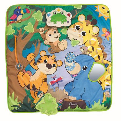 cheerful jungle characters featured on the play mat encourage your child to discover the colourful