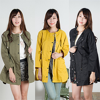 還是momo購物網比較便宜又不用人擠人上網選這組[【MINA.DU】圓領抽繩口袋款風衣 ]