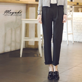 進入 MOMO 購物網官網CP 值非常高的[【MAYUKI】細直條紋打褶西裝長褲-S.M.L ]