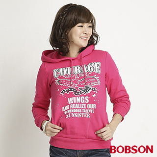 進入 MOMO 購物網官網CP 值非常高的[【BOBSON】女款內刷毛印圖帽T(桃紅31132-15) ]