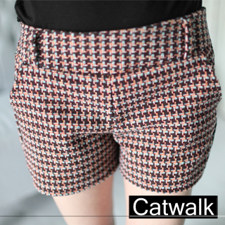 瘦身褲 外套開箱文 評比【Catwalk】骨頭-風車-井字圖樣鬆緊短褲(風車橘) 機能小物區
