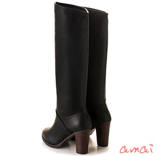 CP值評比高 婦幼 彌月 送禮好物【amai】法國名伶斜口及膝高跟長靴.典雅素面(氣質黑) 年貨大展