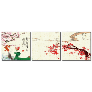【橙品油畫布】三聯寒梅無框藝術掛畫40x40cm(J40032)