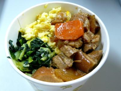 滷肉中的「肉」絕對是不動如山的第一主角,但在其他的「綠葉」上就有些變化...例如,這禮拜的「綠葉」是紅蘿蔔、白羅蔔;前一次則是與筍絲相互搭配...