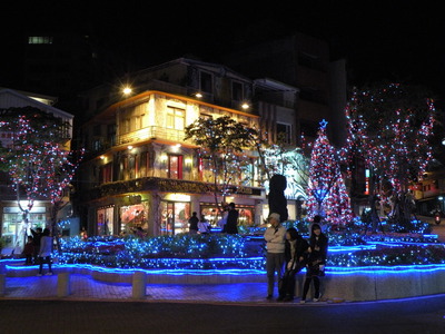 先祝大家平安夜歡喜,並耶誕快樂!(圖中黑黑的是馬偕老爺爺的銅像)淡水從明天開始就不叫「鎮」,要叫「區」了,但「...
