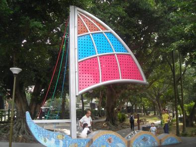 圖註:小可在桃園大溪的公園裡的帆船上^^