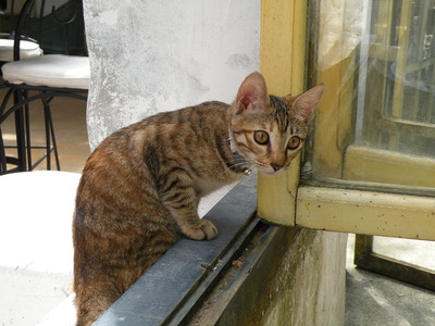 5月27,雨後,晚間,到捷運站接我的礁姊,匆匆跑向我,說在樹叢那邊看見一隻瘦小的貓鑽出頭來對著她叫,她走近伸手...