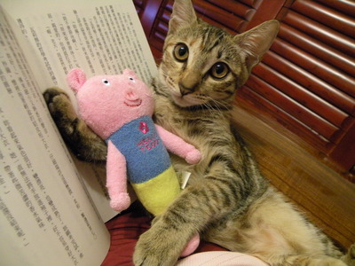 抱著娃娃又是那麼可人啊!貓也愛抱娃娃耶!天ㄚ!