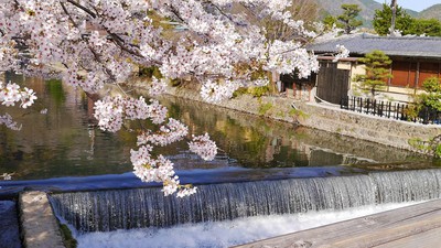 離開平等院後,先不急著逛商店街,往後邊一繞上階梯,準備去造訪「宇治神社」,在這之前發現這邊的櫻花開得好漂亮,而...