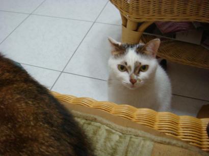 為什麼mini可以坐在姊姊妳的身邊?我也要! (下一刻,金貓便硬跳上來,「卡」在我和mini中間)