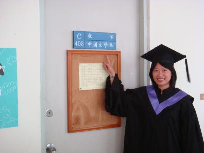 三人在學校裡的「蘇格拉底」(簡稱貓底)餐廳用餐之後 兩位畢業生立刻換裝 好心的家長主動幫我們拍照 感謝啦~ 相片裡自己的表情神態 真的很像大姐姐人社院圖書館前,我和書瑜。 我喜歡挽...