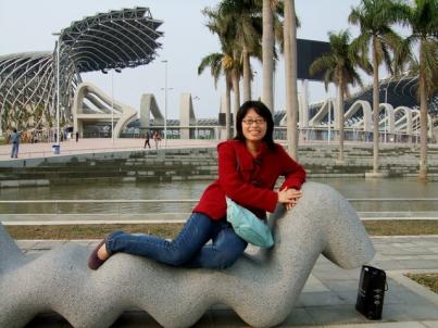 前往半屏山的路上經過世運場館,拍兩、三張照作紀念我簡直和石雕合為一體了。 為了配合石雕而擺POSE的另一顆傻瓜放得很開......★第一次公開S的正面照,可是經過他同意才放的唷~