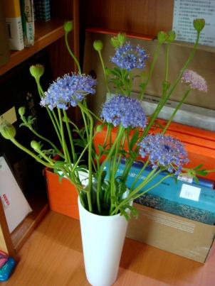 一文給我幾株從沒見過的小花她說名字叫金雀盛開時呈半圓形花色有淡紫與淺粉紅枝條柔弱,花形秀氣是讓人想善加呵護的那種花