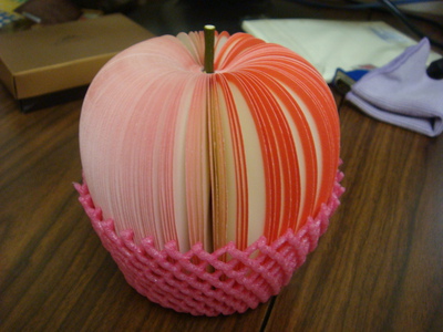 用包水果的紅色泡棉裝起來,遠看幾可亂真(甚至連蘋果籽也印在上頭呢)