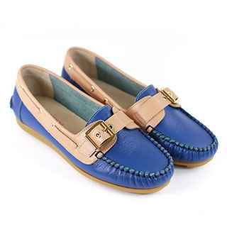 【GP bird 波兒德】奢華金屬釦平底軟墊真皮樂福包鞋(藍色)商品訊息描述: