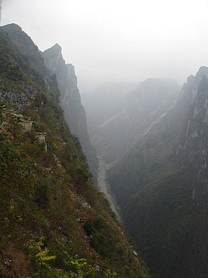 FacebookPlurkYAHOO!一、花江大峽谷 花江峽谷,兩岸懸崖峭壁.為貴州最大的峽谷,曾為國際巨星成龍 拍片的外景;此為左崖,他從橋上往峽谷跳下...真夠驚險刺激! 右崖奇絕,峽谷深100...