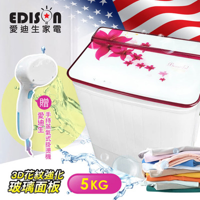 【EDISON 愛迪生】5KG 3D花紋強化玻璃上蓋洗脫雙槽迷你洗衣機(夢幻百合) 討論,推薦,開箱,CP值,熱賣,團購,便宜,優惠,介紹,排行,精選,特價,周年慶,體驗,限時