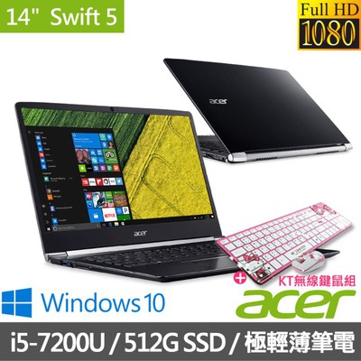 促銷【acer 宏碁】SF514-51-58V1 14吋輕薄筆電-黑(I5-7200U-8G-512G SSD-Win10)+Kitty無線鍵鼠組【CP值超高】 本月折扣