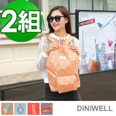 熱賣【JIDA】DINIWELL卡通防水折疊收納後背包(2入組)【活動產品】 價格比較ptt