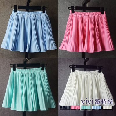推薦 2015新款服飾-vivi薇時尚~百搭甜美糖果色百褶短裙(5色2尺寸可選)