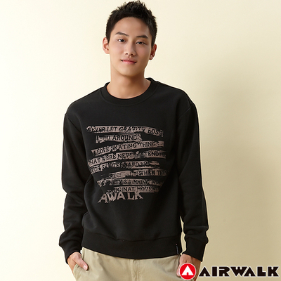 試用文 2015新款服飾-【美國 AIRWALK】城市迷蹤刷毛圓領T-男-神秘黑