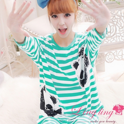 秋冬新款-【lingling】全尺碼-圓仔條紋二件式睡衣組 藍綠A1246 推薦