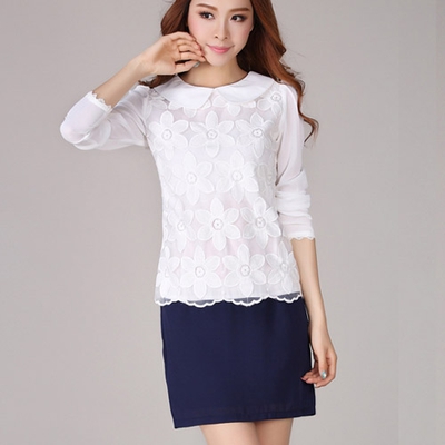 今夏流行款!【麗質達人中大碼】預購-L2145花朵拼接洋裝(藍白) 分享文