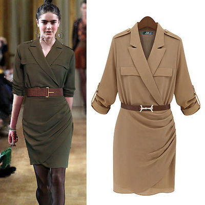 【魅麗女人】歐美設計軍裝感精品雪紡洋裝(M)