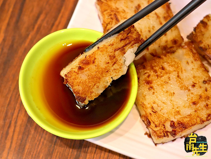 臘味蘿蔔糕:以蘿蔔、臘肉、臘腸等食材炒香成漿後再蒸熟,煎得外酥內嫩,用料實在,搭配超濃郁的特調蒜蓉醬,越吃越涮嘴