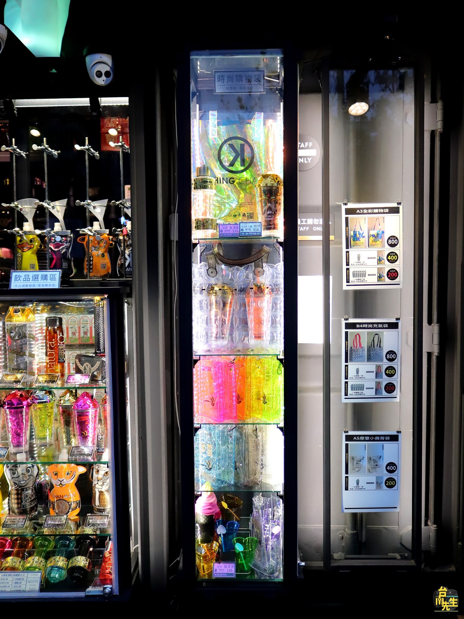 購物袋都擺在門前玻璃櫃內,價目表在旁邊,最近新增了不少顏色,看起來超繽紛