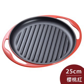 【推薦必選禮物】【法國 Le Creuset】琺瑯鑄鐵圓形橫紋烤盤 25cm 櫻桃紅 特價限時優惠