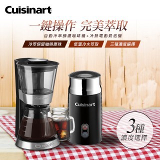 【2019流行產品】【美國Cuisinart美膳雅】冷萃咖啡機+冷熱電動奶泡機DCB-10TW+FR-10TW(送Bodum 雙層玻璃杯200) 本月限時刷卡折扣