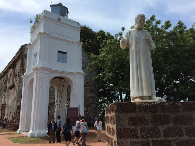 其實聖保羅教堂遺址,與正式名稱為「聖保祿大教堂遺址」的澳門大三巴牌坊幾乎同名同姓,只是翻譯有點不同而已。澳門的大三巴牌坊現存部分主要為堅硬的花崗岩,而馬六甲的聖保羅教堂遺址建材為多孔的紅土石,可謂大異其趣,在建築美學及保存狀況來看,大三巴是勝幾籌的。