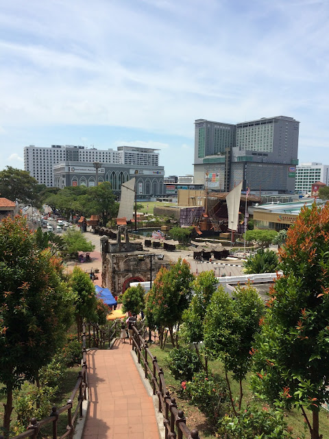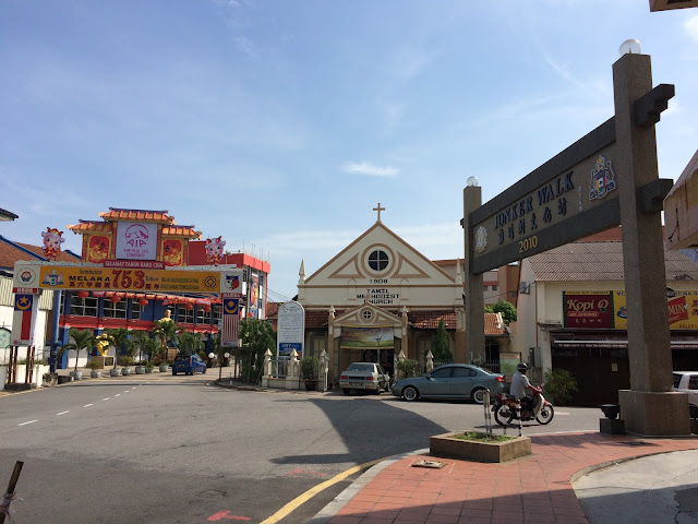 馬六甲主城區很小,一下子感覺澳門變成了「大澳門」,雞場街像一條延長了的官也街,而這條「官也街」混雜了十月初五街和福隆新街的元素。馬六甲王朝據說是明朝屬國,建於十五世紀初,比澳門開埠還要早,由於其位置優越和豐富的物產,吸引殖民者覬覦,先是十六世紀成為葡萄牙殖民地,十七世紀中至十八世紀末又被荷蘭殖民,接着便是英國統治,一直到馬來亞獨立。悠久歷史產生多元文化,其中屬於葡國文化的遺跡主要有聖地亞哥城門和聖保祿教堂,還有其它房屋的建築風格,處處都折射出同是葡國殖民地的澳門的身影。二零零八年,馬六甲市成為了世界文化遺產。