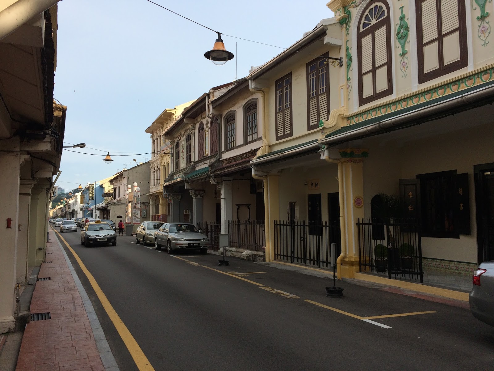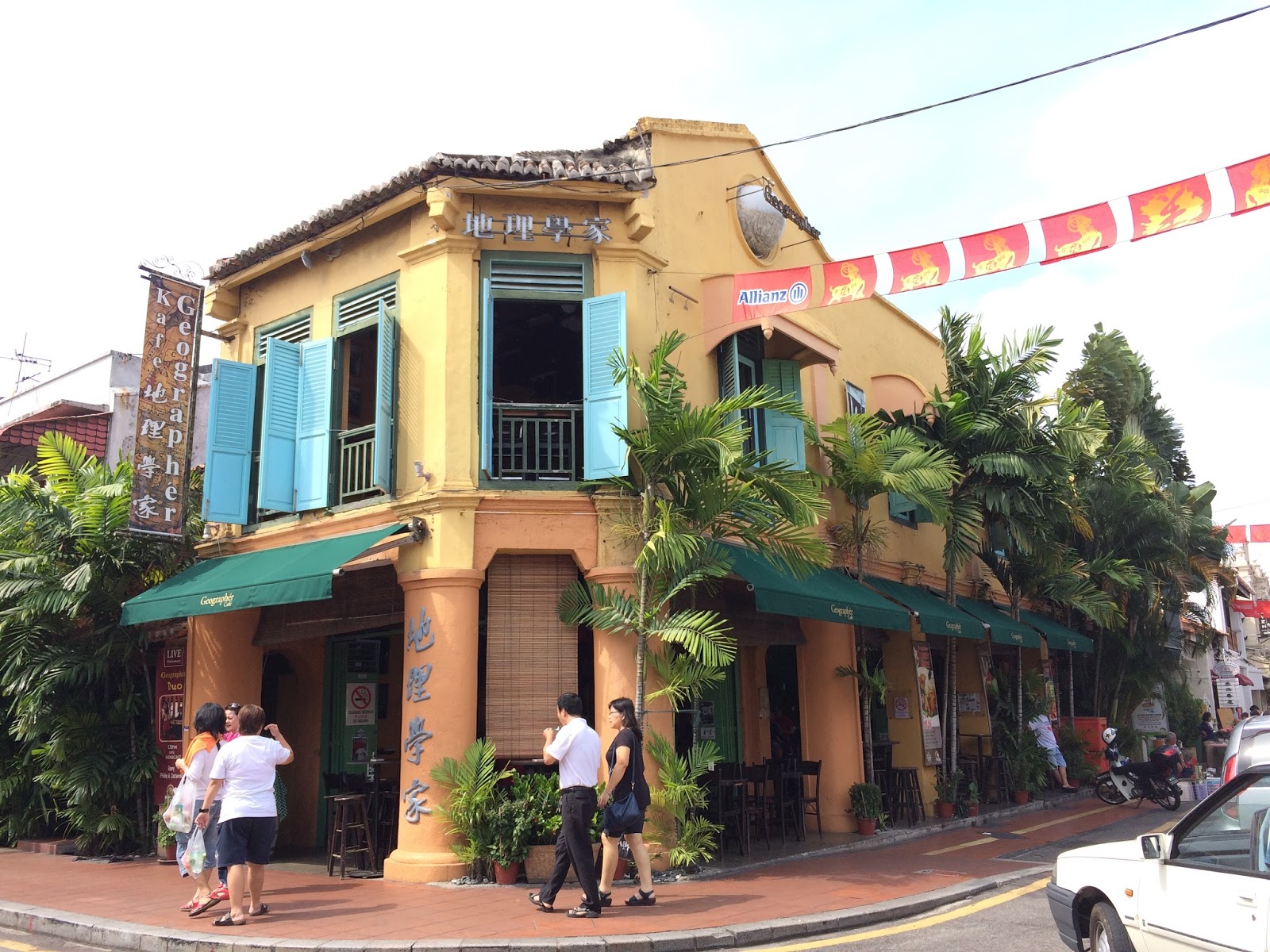 在雞場街及周圍的街巷信步而遊,不時與那些令我想到澳門的建築物不期而遇,那裡也有觀音堂,也有同鄉會,也有舊貨地攤,風格與澳門相似的建築,屋與屋之間像玉米顆粒一樣緊密相連,中式的、西式的、馬來式的建築錯雜混合,一派平和又不突兀,簡直就像一個濃縮的澳門街,更感親切。在著名的地理學家咖啡店喝杯咖啡,儘管依然有點反胃,只能吃幾塊曲奇,然而得以慢慢享受慵懶的早上,也令身體的不適暫時得以忘卻。坐在咖啡館裡甚麼也不做,甚麼也不想,呆呆地度過半小時,這樣的時光,一年裡也沒幾回。