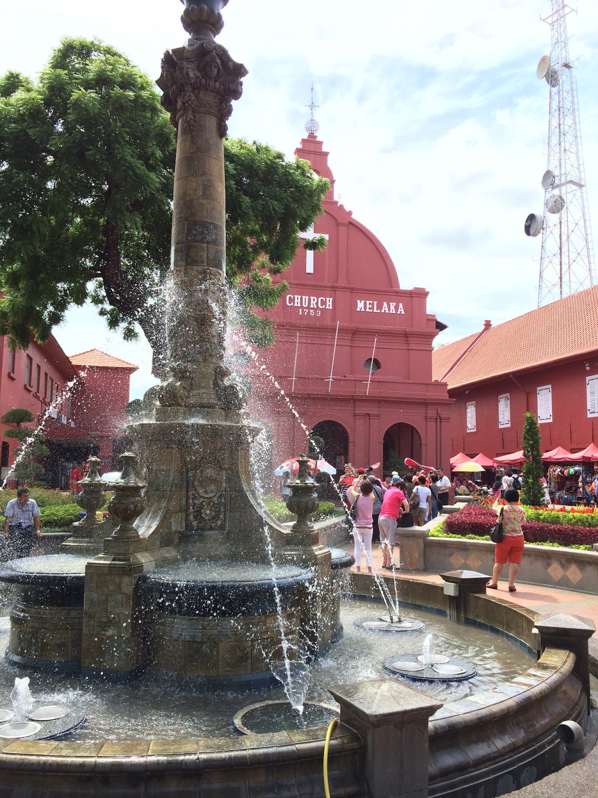 越過馬六甲河,來到荷蘭紅屋建築群廣場,噴水池、鐘樓和教堂聚集一起,真像澳門的議事亭前地。這些建築始建於十七世紀中葉,顧名思義是荷蘭殖民時期留下的遺物,部分建築以前是政府機關所在地,現在是博物館。朱紅色的建築在美感上沒帶給我大驚喜,卻令我想起澳門的荷蘭園,建築風格相異,歐陸風情卻相仿,甚至一樣有「荷蘭元素」,又是一個在我腦內投射出澳門的地方。