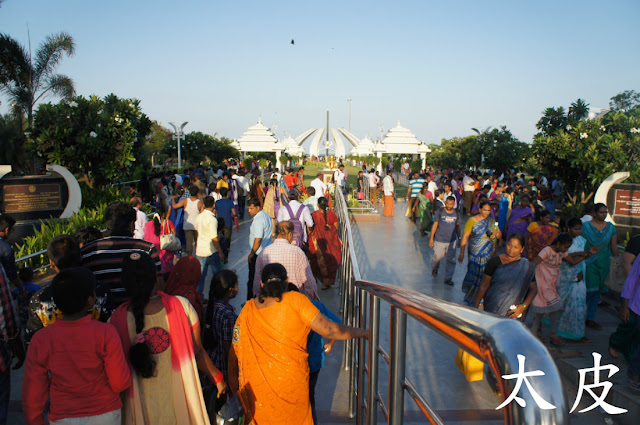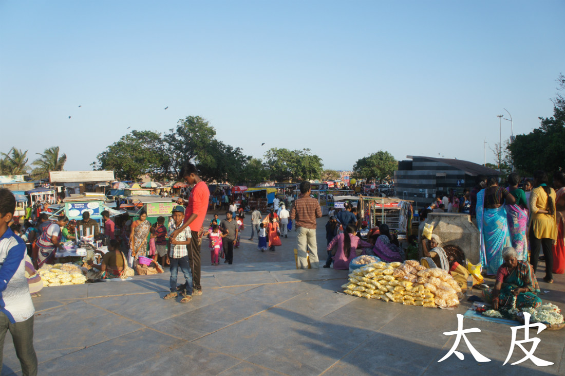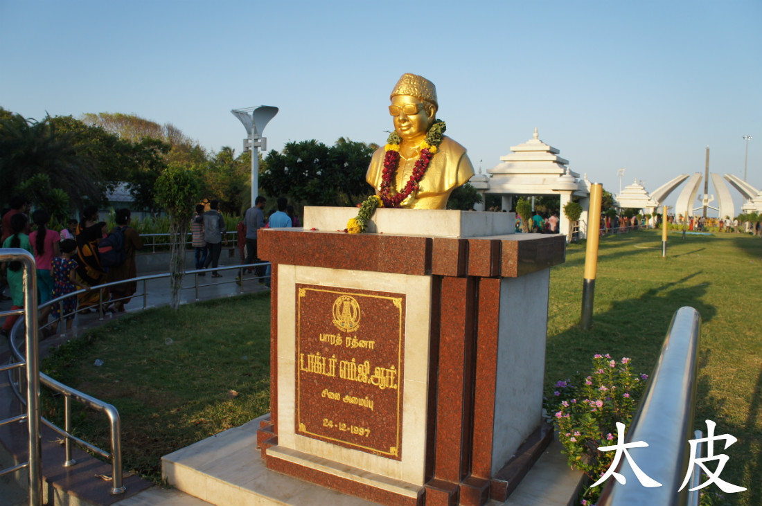 走了大概三公里,靠近馬德拉斯大學的地方有個市集,出售玩具、衣服、食物和日常用品,人頭湧動,十分熱鬧。市集旁是一個叫作MGR紀念公園的地方,我莫名其妙、不知就裡地跟着擁擠的人潮轉了一圈,當時不知紀念的是誰,只見銅像戴着太陽眼鏡的造型好有型,後來上網搜查才得知那是紀念泰米爾納德邦一位已故首席部長的地方。