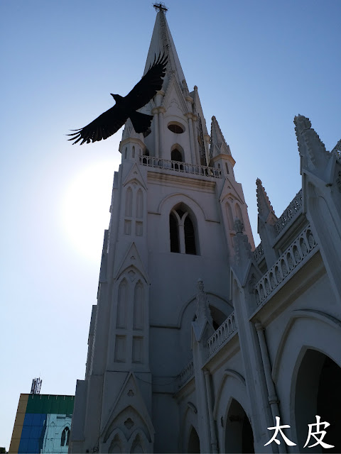 在清奈最後一天的下午,我沿着全球最長海灘之一的遊艇碼頭海灘(Marina Beach)走了一段,也參觀了附近景點,包括聖多默教堂(St. Thomas Cathedral Basilica)、印度哲學家辨喜(Swami Vivekananda)故居、馬德拉斯大學(University of Madras),以及聖喬治堡(Fort St George)等。但由於受早上事情影響,加之是旅遊尾聲還要準備晚上離開而心情缺缺,又怕被老屈(敲詐),除了聖多默教堂,其他基本上只在外圍看看而已。