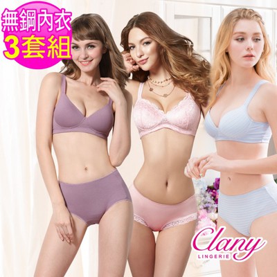 【可蘭霓Clany輕舒無鋼圈竹纖/Tactel條紋/蕾絲BCD內衣(3套組 隨機出貨)