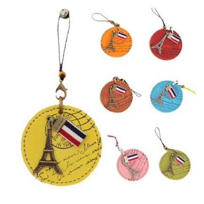 • 可愛巴黎鐵塔拼布皮革專屬吊飾,