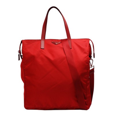 【PRADA】VELA經典三角LOGO尼龍手提購物包(正紅BN2788-FUOCO)