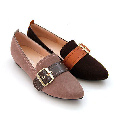 - 鞋款品名:全真皮蜜糖微醺撞色寬版皮飾扣牛麂皮尖頭內增高樂福鞋