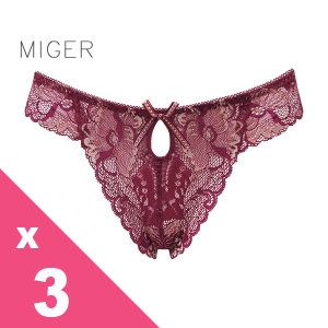 [MIGER密格內衣]撫媚蕾絲性感中低腰丁字褲-葡萄紫+粉紫+柑色