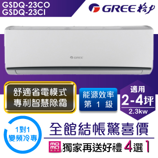 【GREE 格力】2-4坪變頻冷專精品分離式冷氣(GSDQ-23CO-GSDQ-23CI) 優惠賣家