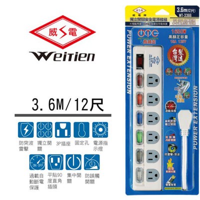 上網幫他查了 【威電牌】3孔7開6插電腦延長線 15A 12尺(WT-3366-12) 評價,推薦,開箱文,價格,報價,比較,規格,推薦那裡買便宜!