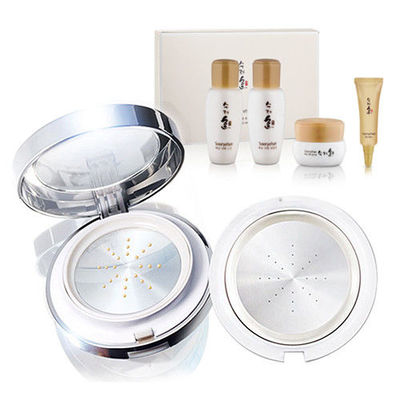 【秀麗韓】晶燦紫斷長效金屬氣墊粉底#21-亮白膚+雪肌白蔘沁白4件組(水凝露20ml+乳液20ml+煥膚霜5ml+逆齡精華4ml)