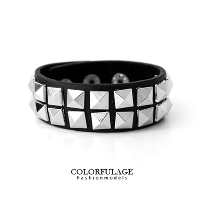 銀色方形鉚釘鉚釘皮扣手環 評鑑大隊