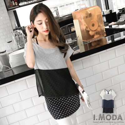 最近工作閒暇之餘去逛街看到0820新品 浪漫微風~雙色透膚雪紡紗x圓點背心兩件式上衣.2色 還挺有興趣的..