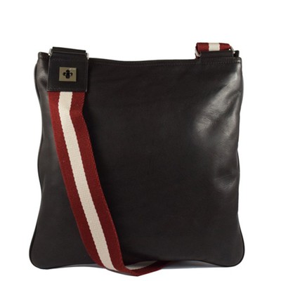 【BALLY】都會質感全皮革雙色織帶中性斜背扁包(深咖)的產品介紹在下面,